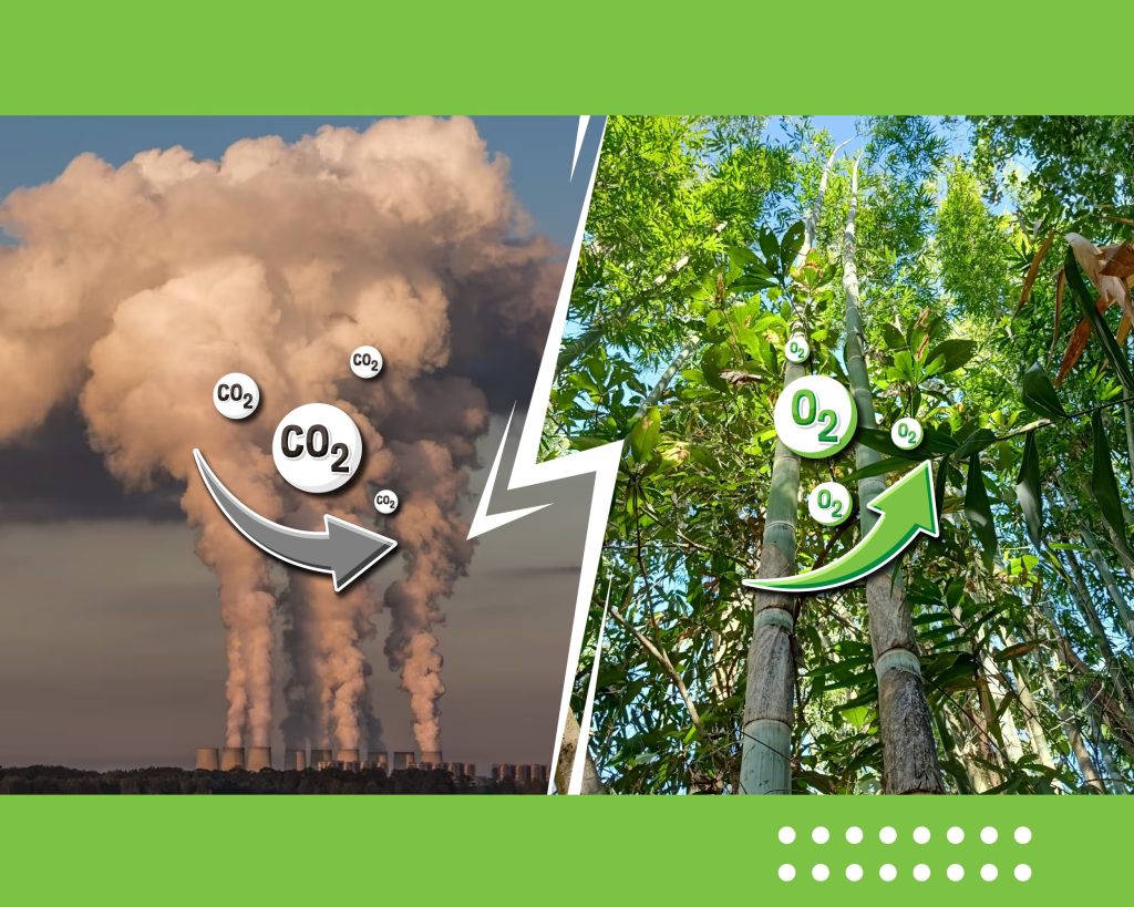 Bambus fungerer som et naturlig karbonreservoar ved å absorbere og lagre betydelige mengder klimagasser i stammen. Dette reduserer karbonutslippene i atmosfæren og bidrar til å bekjempe klimaendringene. Bambus kan også erstatte materialer med høye karbonutslipp, som PVC, stål og betong, samtidig som det reduserer behovet for andre typer tremateriale.